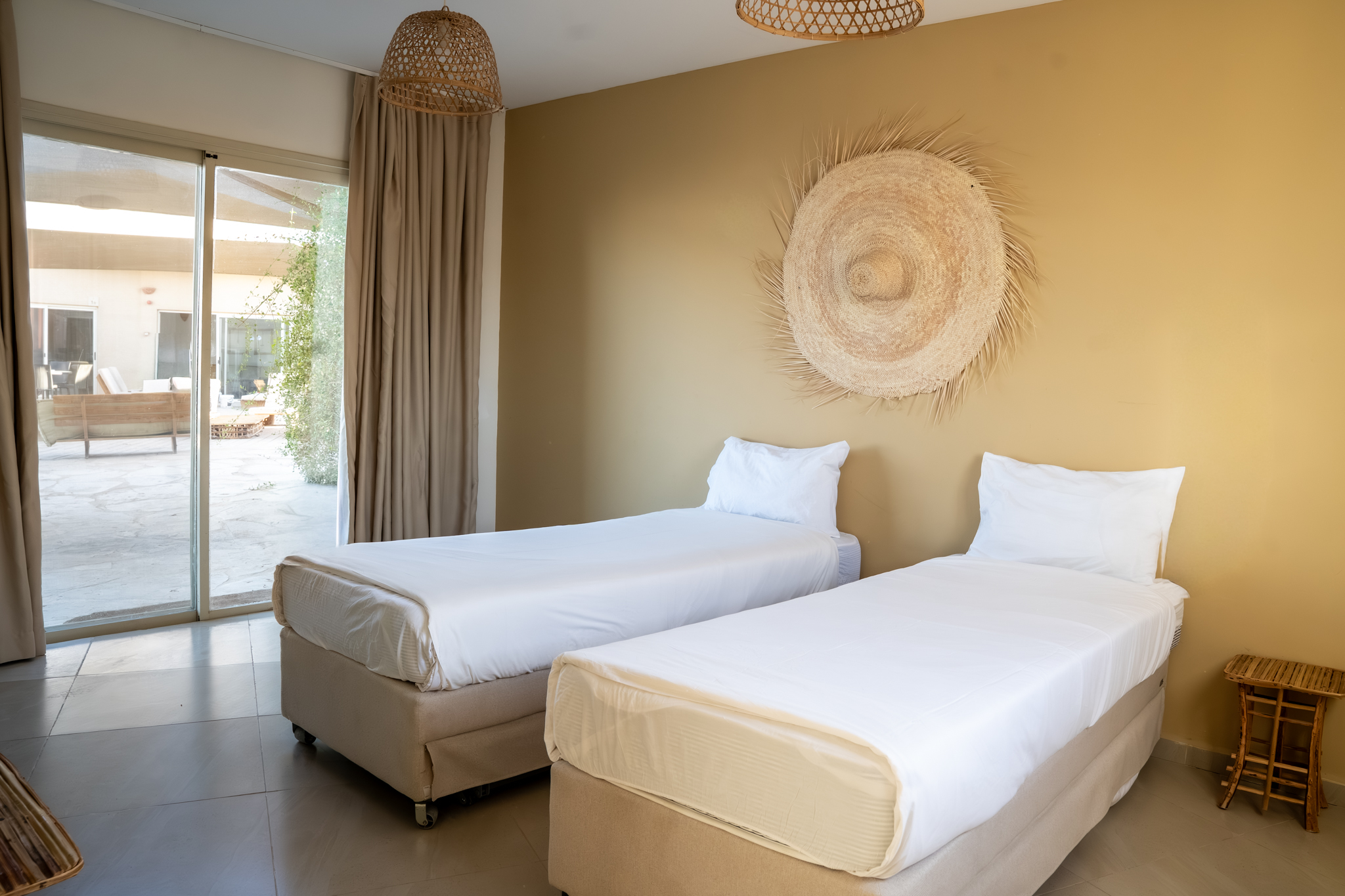 יחידה זוגית חדשה ומעוצבת, הממוקמת מול נוף מדברי ופונה למתחמי הפעילות של הכנס.