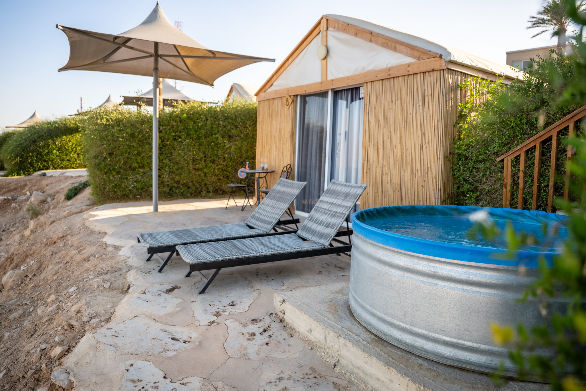 במרפסת החדר יש שכשוכית פרטית המחוממת בחודשי החורף וקרירה בחודשי הקיץ, הצופה אל הנוף המדברי הפתוח.