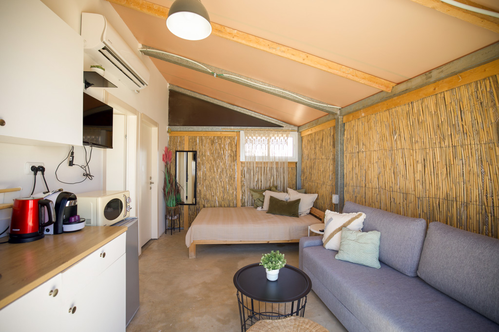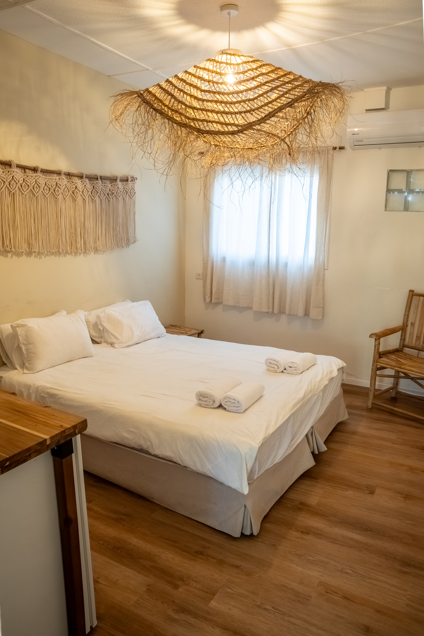 היחידה כוללת חדר שינה עם מיטה זוגית, סלון עם ספה נפתחת, שירותים ומקלחת פרטיים