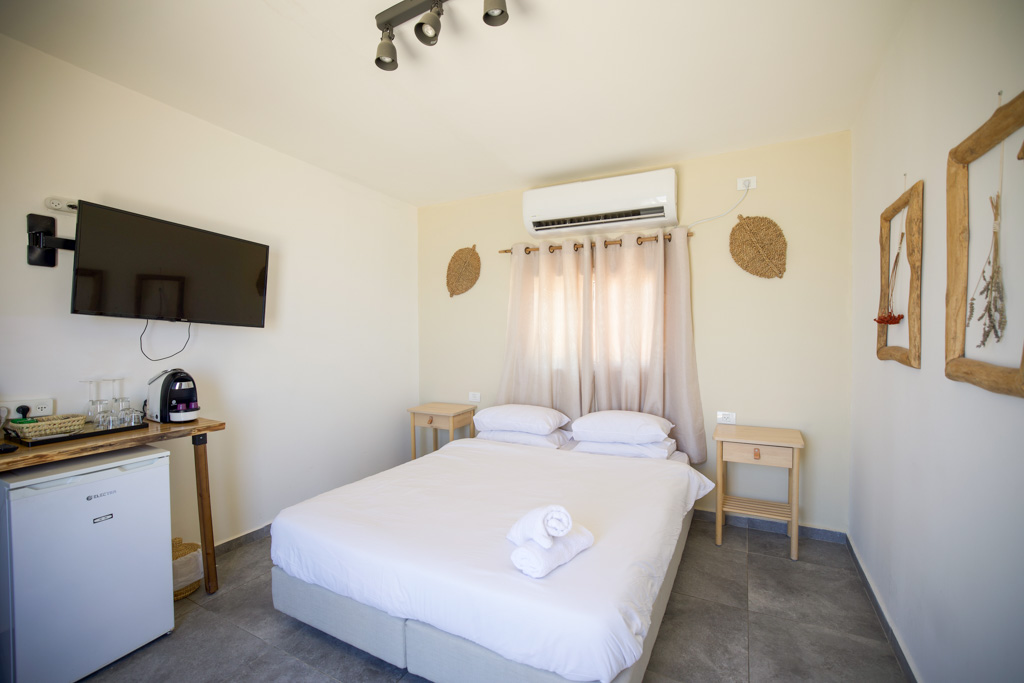 בחדר תהנו ממיטה זוגית, מקלחת ושירותים פרטיים, פינת קפה/ תה, מיני מקרר, מכונת אספרסו, מיזוג, טלוויזיה, WIFI, מגבות ומצעים. לחדר יש מרפסת רחבה לנוף עם שכשוכית פרטית.